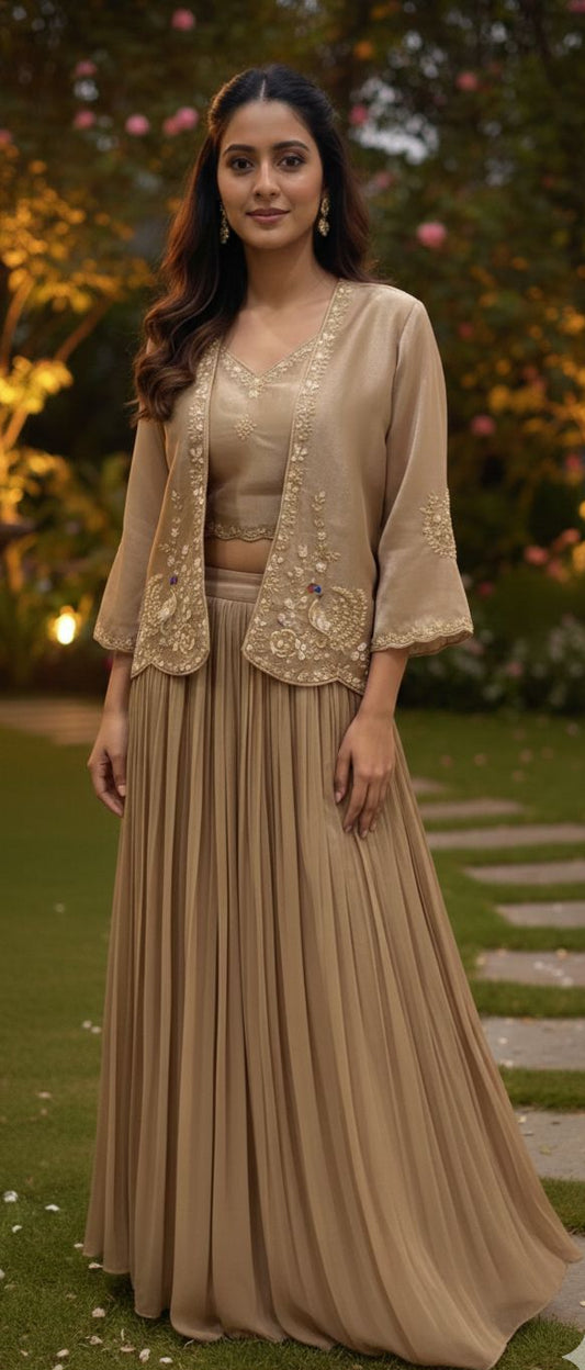 Sold outPleated Lehenga, jacket & Bustier