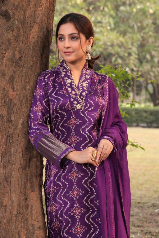 Purple Kurti Pant Cord Set – 2 Pc Contemporary Ethnic Wear
