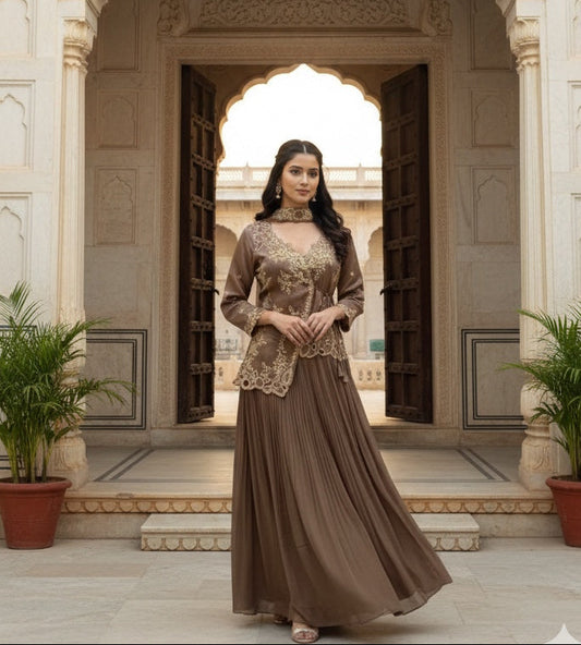 Asymmetric jacket with Pleated skirt & Dupatta .