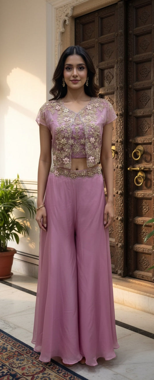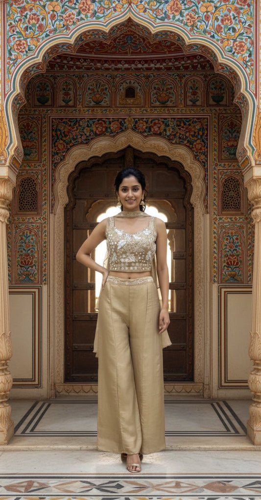 Crop Top with Divider & Choker Dupatta .