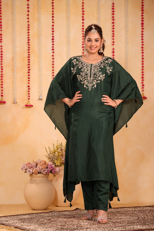 Rani Hand-Embroidered Kurti Set with Pant & Dupatta โ Silk/Organza, 3 Pc