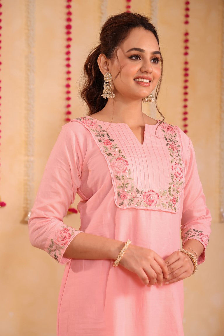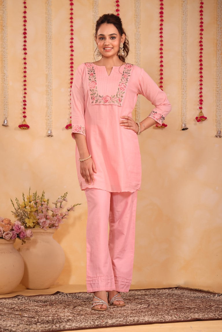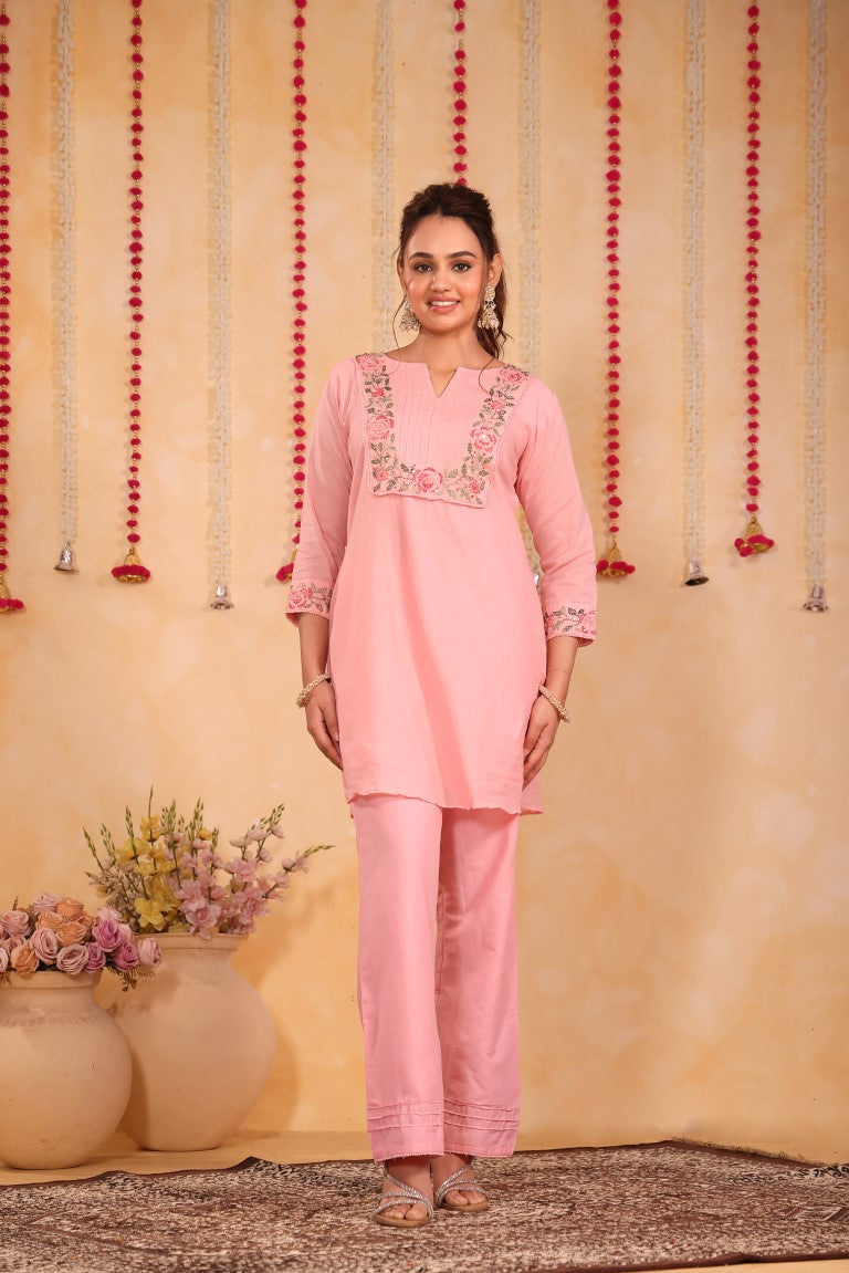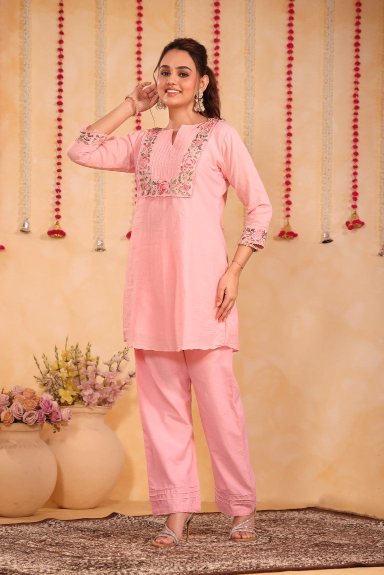 Experience the perfect blend of tradition and modernity with this 2-piece set crafted from premium cotton. Featuring intricate hand embroidery and stylish cord details, it embodies the essence of Indo-Western contemporary fashion. Ideal for those seeking comfort without compromising on elegance, this set offers versatile wear for various occasions.