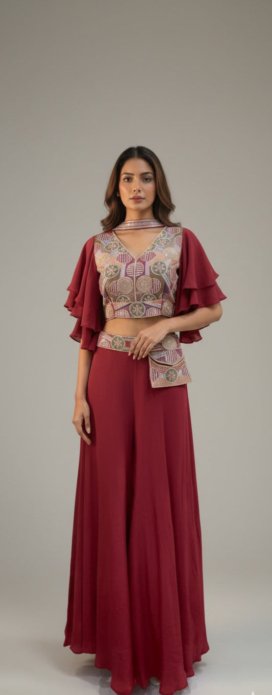 Jumpsuit with Choker Dupatta & Detachable Waist Belt