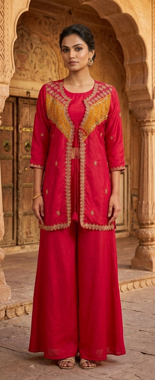Ethereal Kurti Sharara Set with Scalloped Dupatta